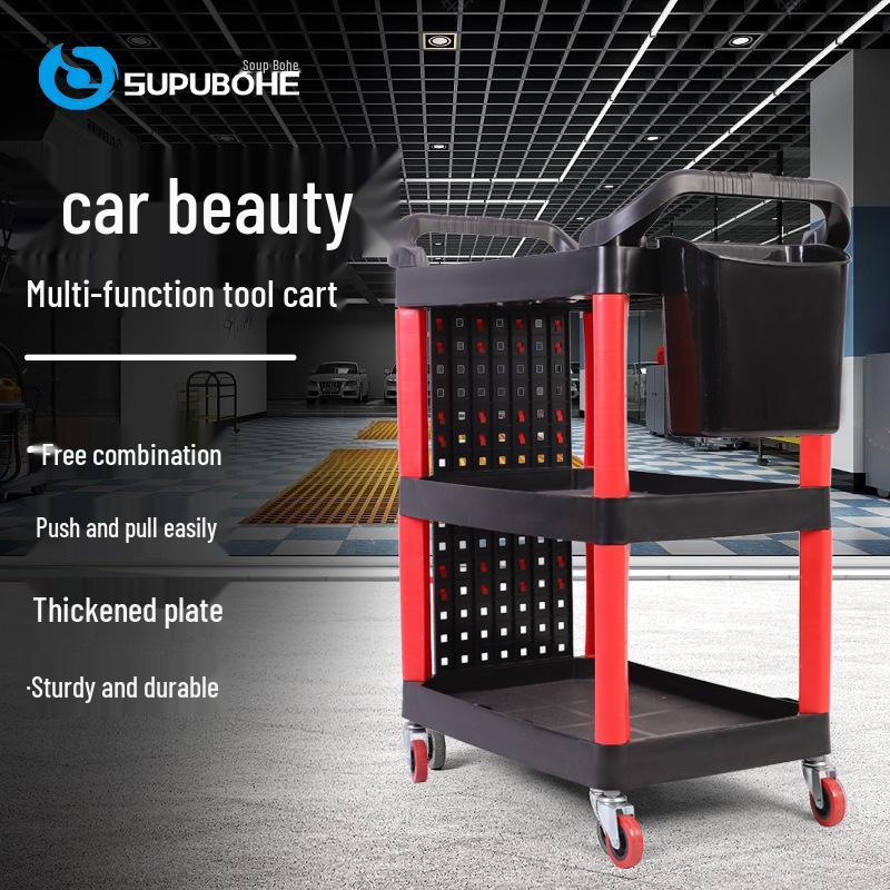 Portable Three-Layer Tool Cart for Car Detailing and Hair Salons