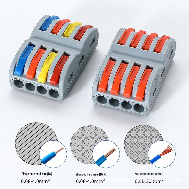 Color-Coded SPL-4 Quick Wiring Terminal: 4-In/4-Out Butt Splice Connector