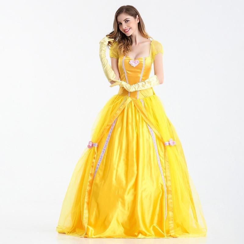 Halloween Princess Dress Yellow Fairy Dress European Retro Court Dress Fairy Tale Themed Costume, Bell Princess Dress
