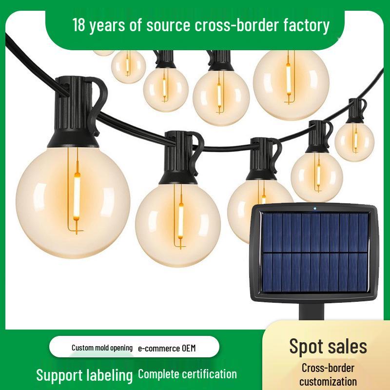 Waterproof LED Solar G40 Globe String Lights, Retro Tungsten Filament Bulbs for Outdoor Camping Atmosphere