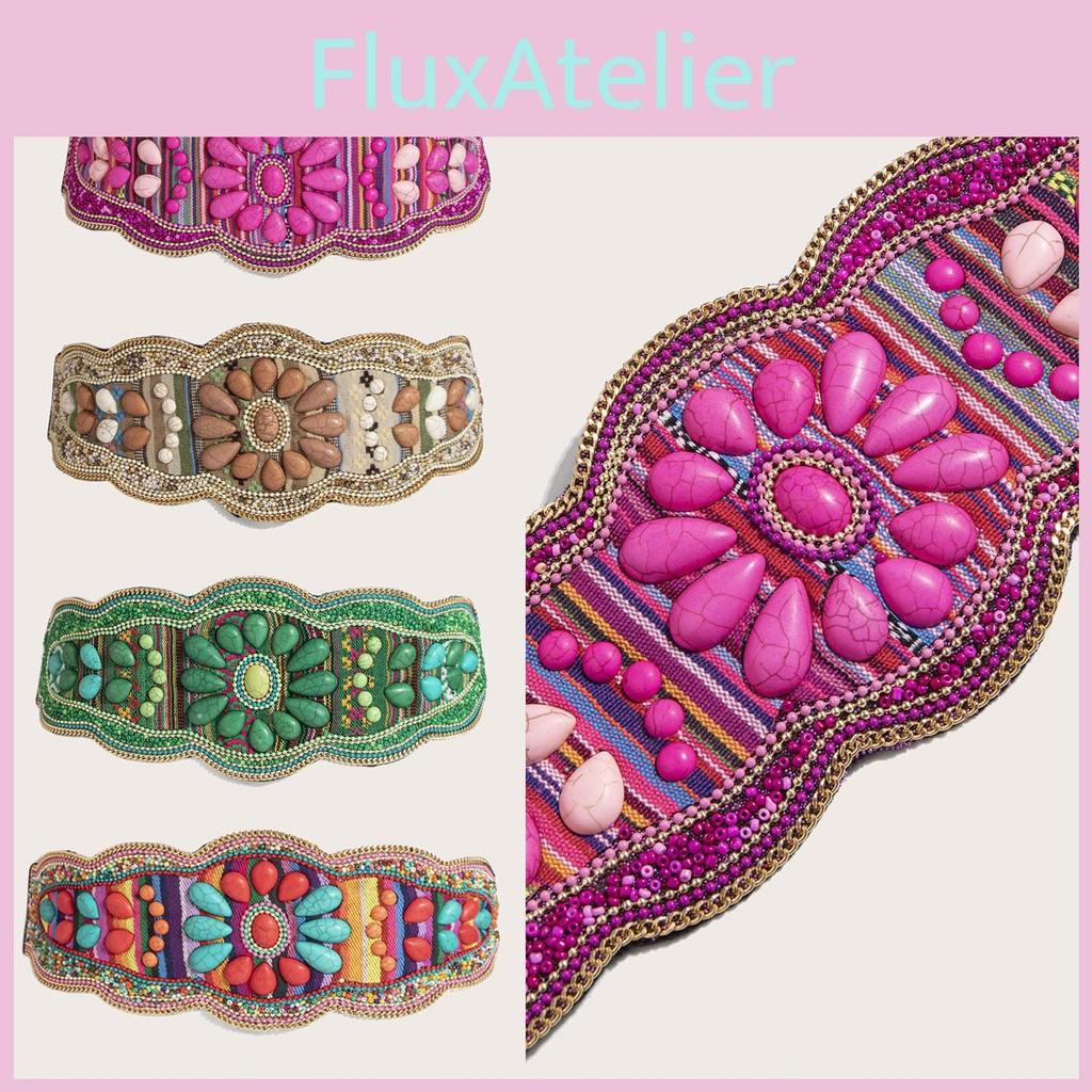 Bohemian Womens Style Fabric Waist Belt With Turquoise Beads And Embellishments For Seasonal Outfits