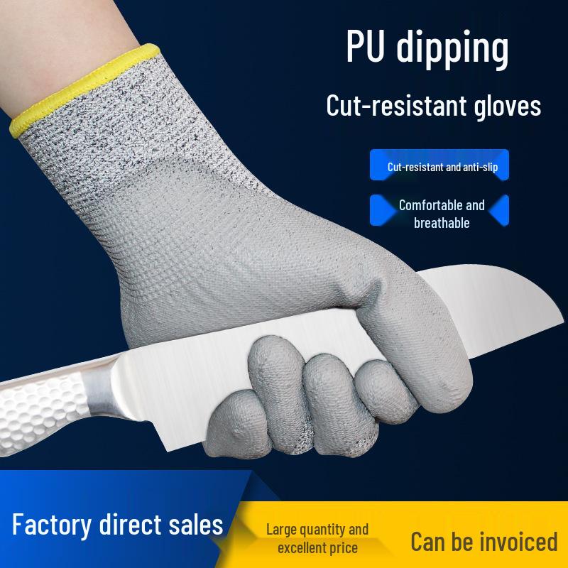 Level 5 Cut-Resistant PU Coated Industrial Gloves - Non-Slip, Wear-Resistant, Cut-Proof Safety Gear