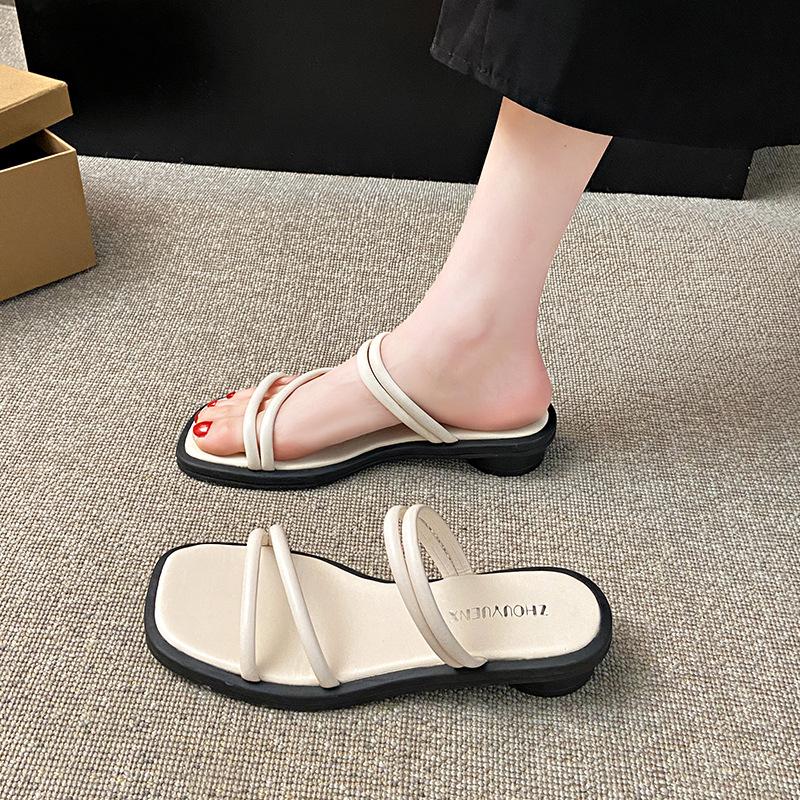 French Evening Breeze One-word Slippers Women's Summer Wear 2025 New Korean Version Fairy Retro Strap Flat Sandals