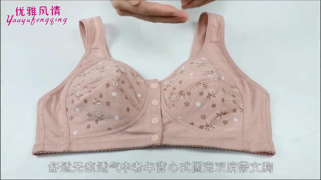 1. Wire-free, printed, front-fastening bra provides excellent support.