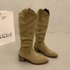 Brown V-mouth Boots Women's 2025 Spring New Thick Heel Suede Tall Knight Boots Popular Western Pile Boots
