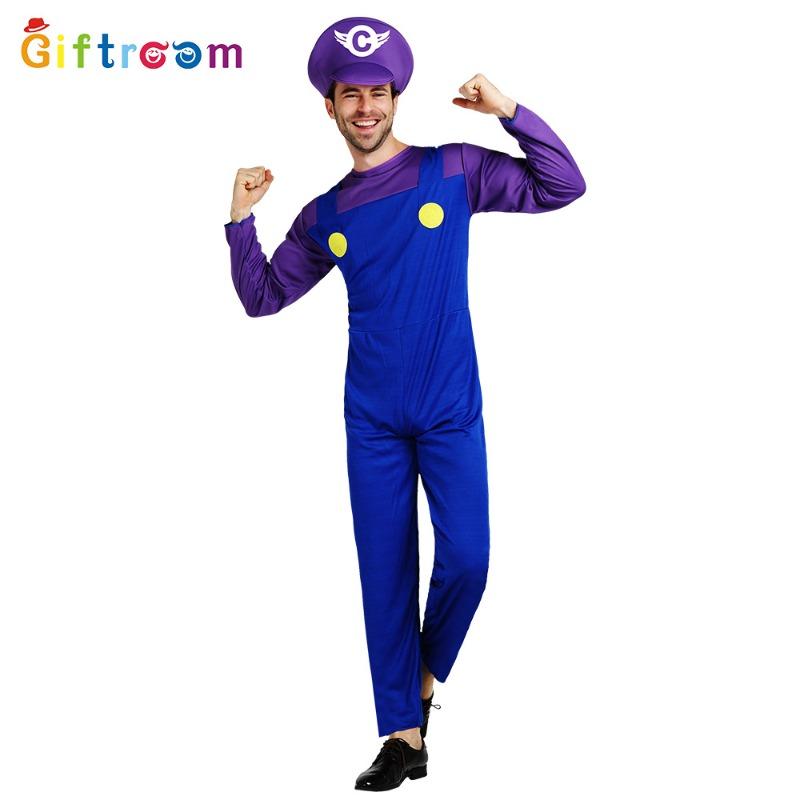Super Mario Couple Cosplay Mario Overalls Anime Cartoon Game Uniform