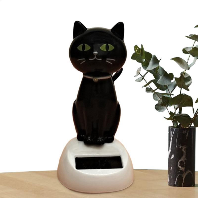 Solar Shaking Cat Car Decoration Cartoon Cat Toy Dashboard Decorations Solar Shaking Head Doll Black Cat Small Gadget Decor