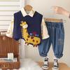 Boys' Long Sleeved 3-piece Set, Autumn and Winter Printed Vest, Cartoon Shirt+casual Denim Pants Set, High-quality Children's Clothing