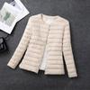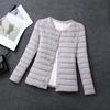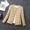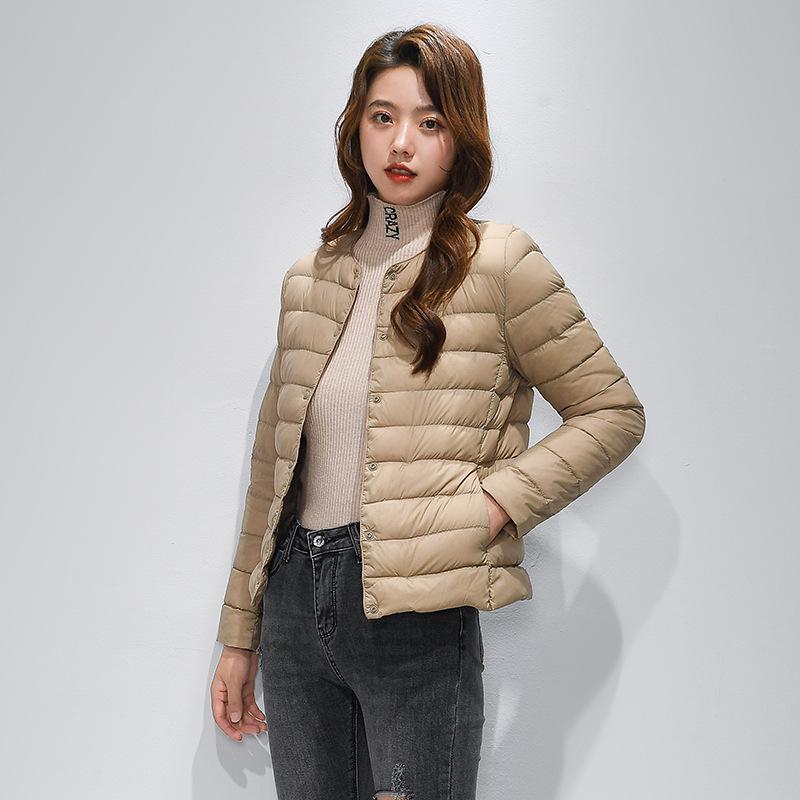 This women's collarless lightweight down jacket is designed for those who seek style and comfort. Filled with duck down, it provides warmth without bulk, making it an ideal choice for autumn and winter. The thin profile and slim fit create a flattering silhouette, while the stand neckline adds a touch of contemporary elegance. Made from durable polyester, this jacket ensures long-lasting wear. With long sleeves, it offers full coverage and protection against chilly weather. Perfect for plus-size figures, it combines practicality with stylish design.