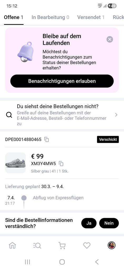 First, the delivery was until April 9th, and then an extension until April 18th is definitely not coming because it says until May 20th. You have to wait and then cancel, superr, will never buy/order from Joom again!!!