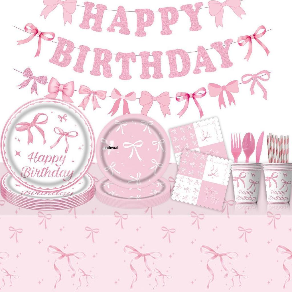 Pink Bow Birthday Party Disposable Tableware Set