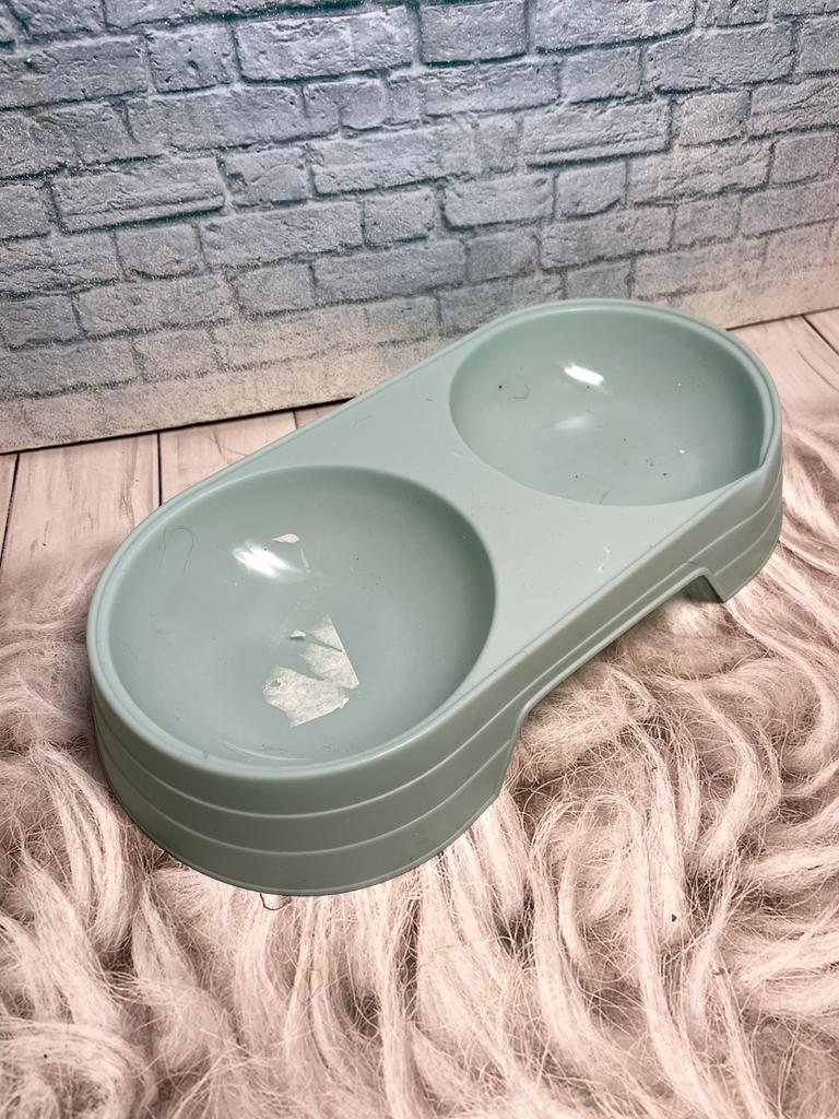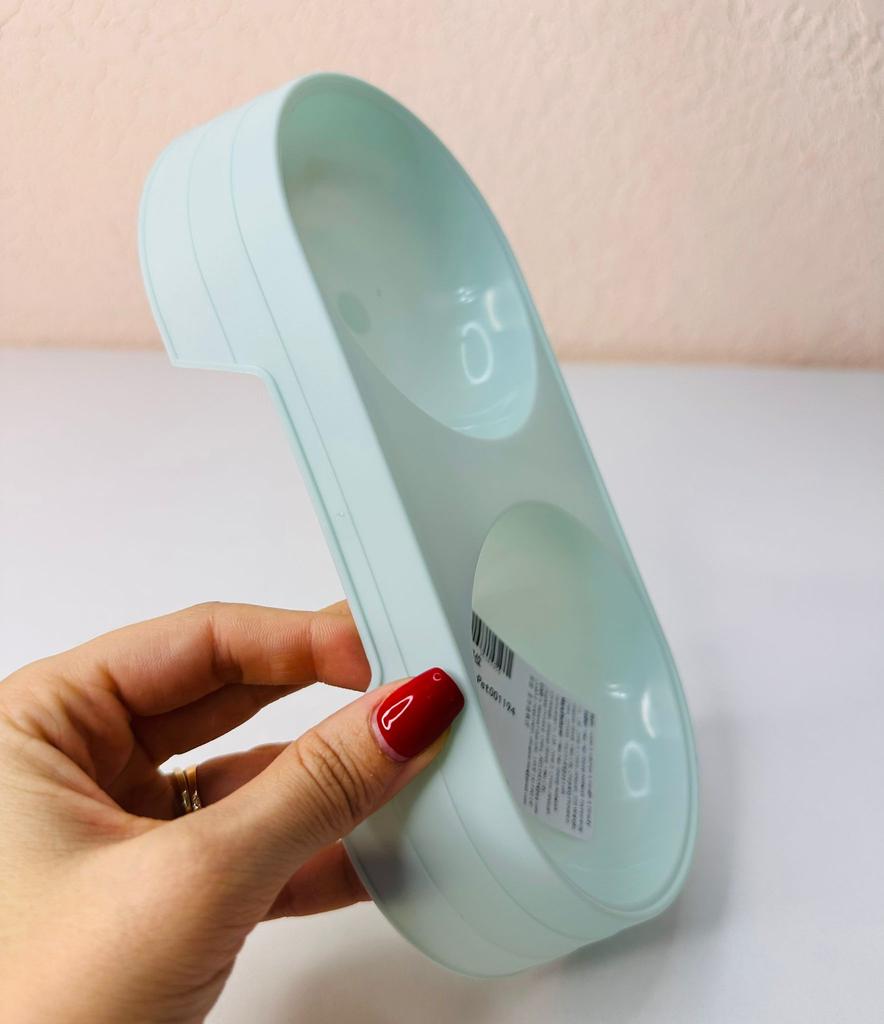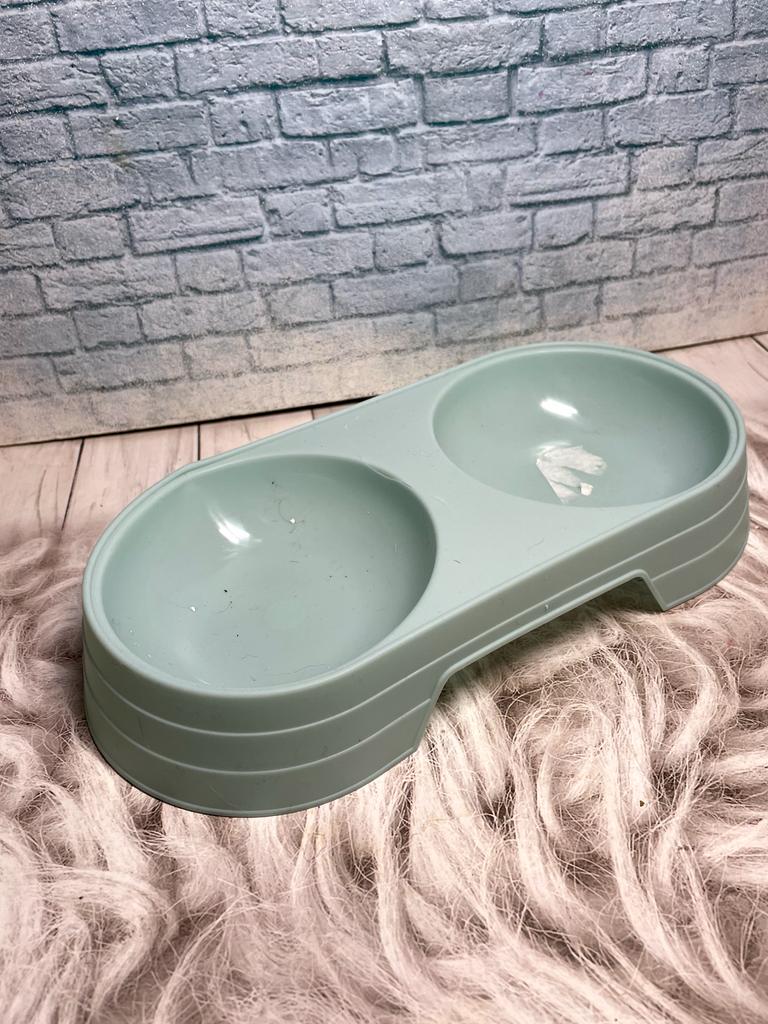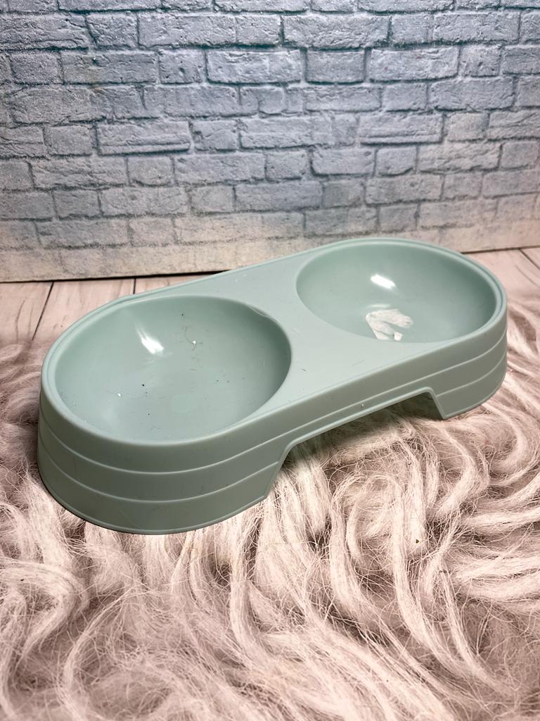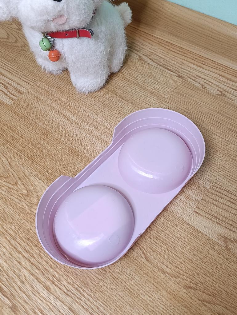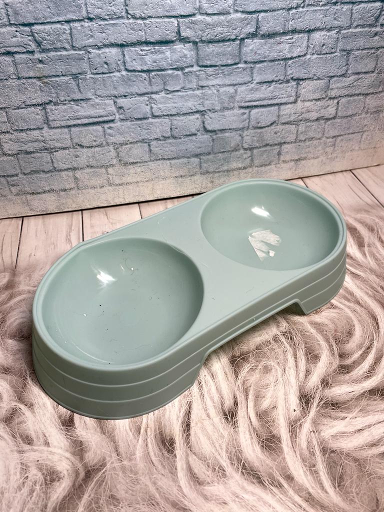 Double pet bowls are used to hold food and water simultaneously. Type: Double bowls, ideal for cats or small dogs. Material: Made of plastic. Colors: Available in various pastel colors, including orange, purple, mint green, and light yellow. Purpose: A convenient feeding solution that allows you to keep food and water in one place. I recommend.👍