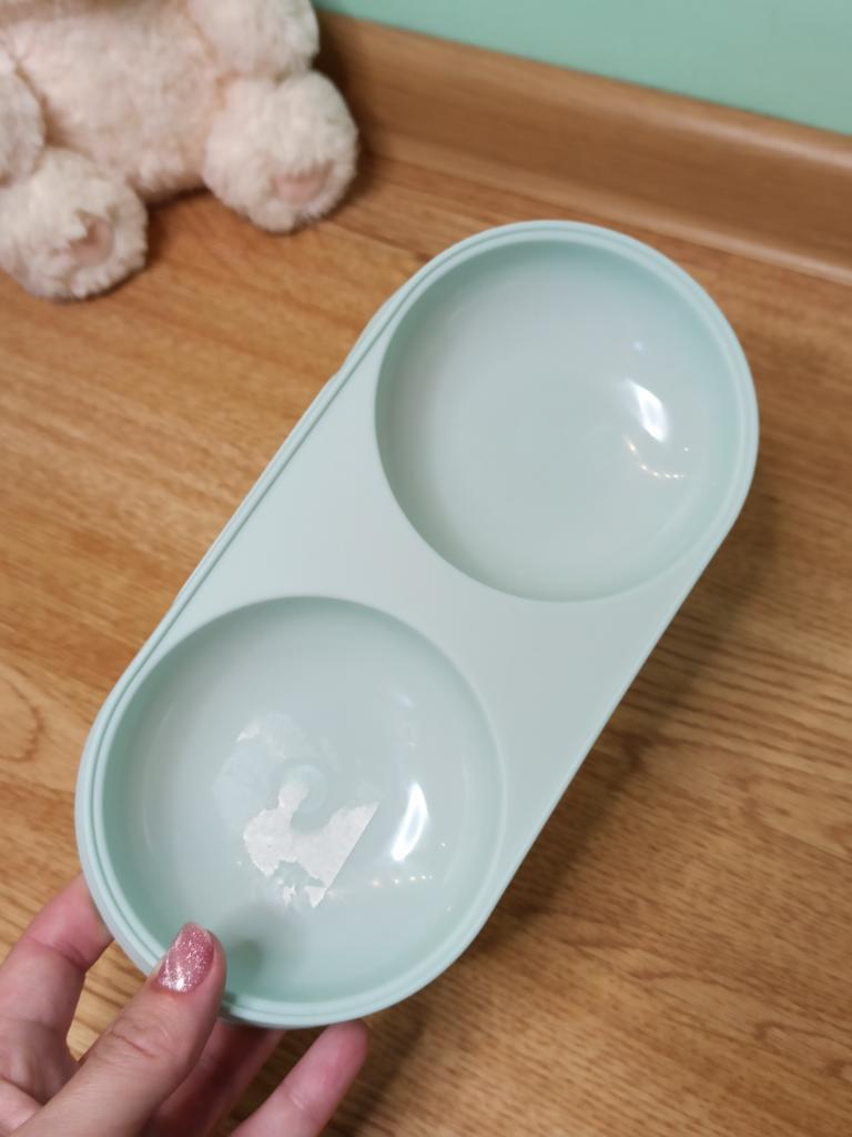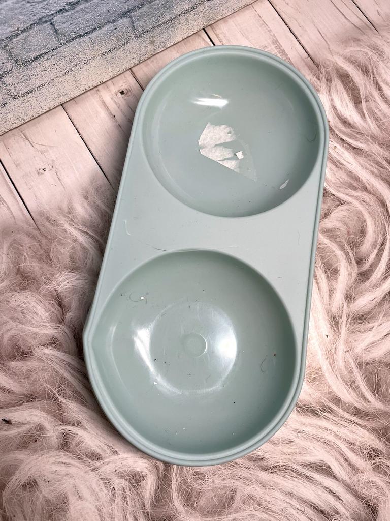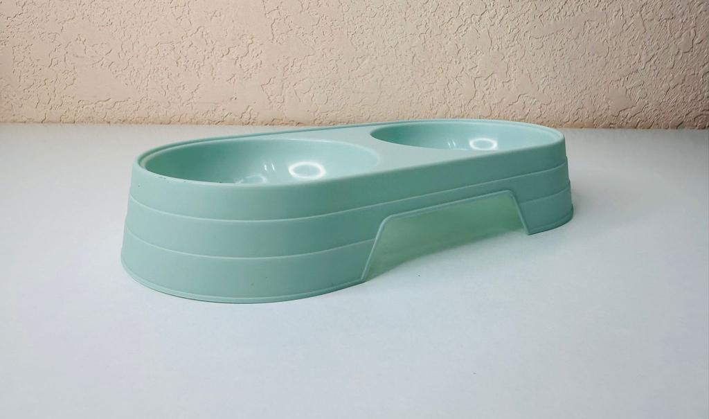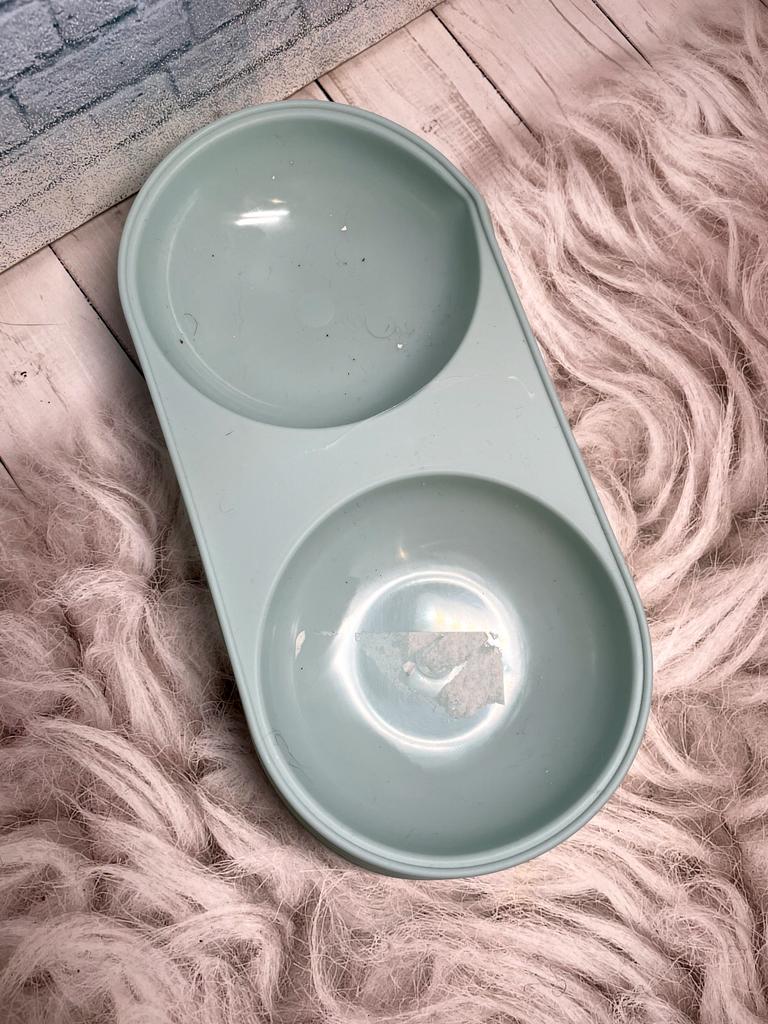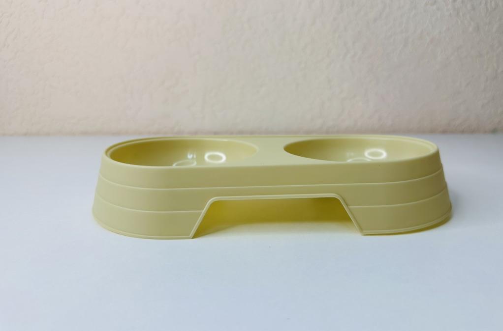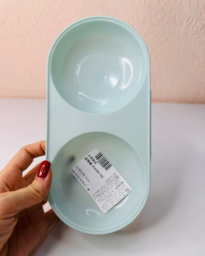 Double pet bowls are used to hold food and water simultaneously. Type: Double bowls, ideal for cats or small dogs. Material: Made of plastic. Colors: Available in various pastel colors, including orange, purple, mint green, and light yellow. Purpose: A convenient feeding solution that allows you to keep food and water in one place. I recommend.👍