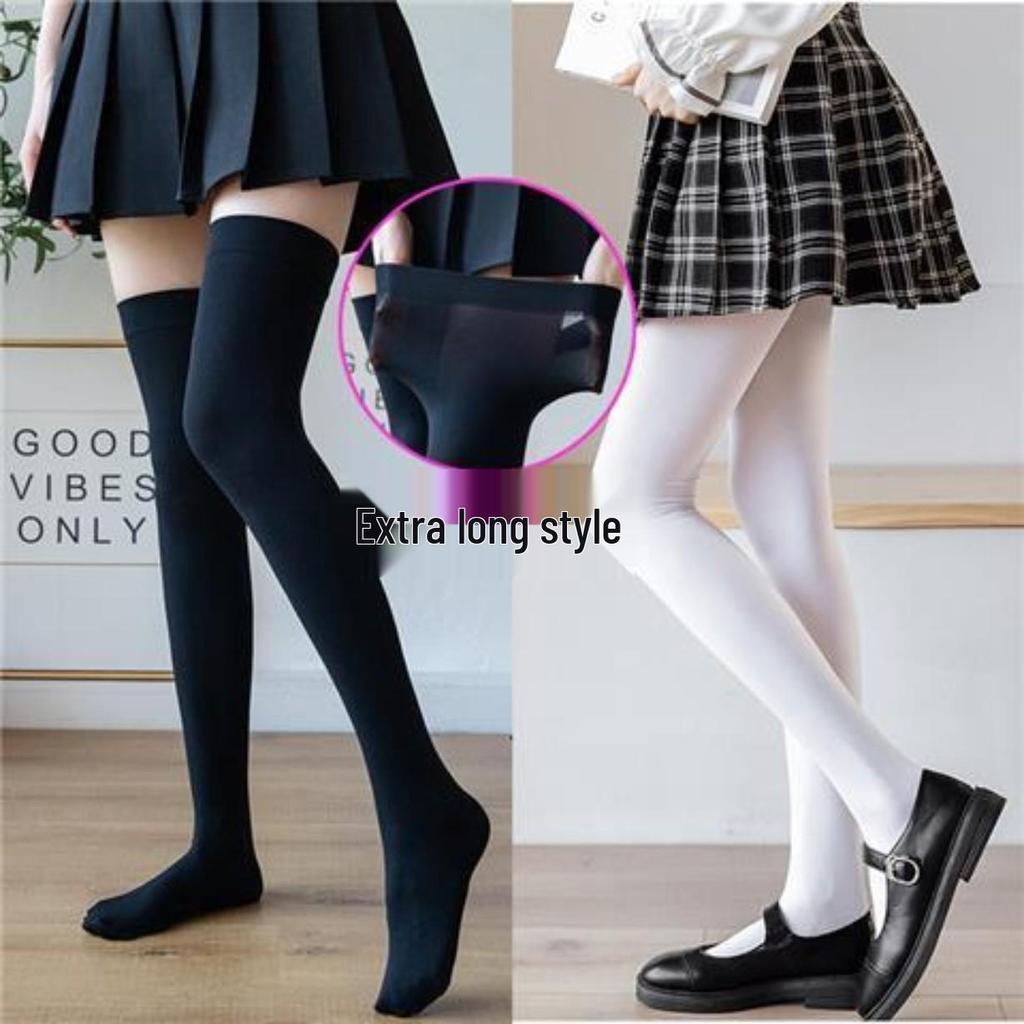 Extra Long Velvet Thigh High Socks for Tall Women, 65CM Over-the-Knee Black Stockings for Layering