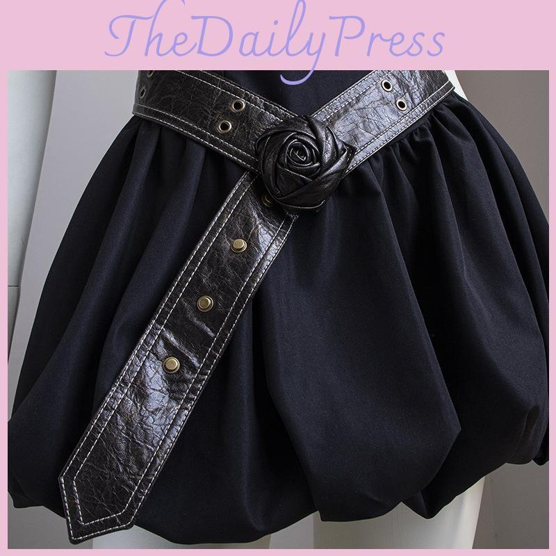 Fashion Flower Rose Waist Belt For Women With Faux Leather Adjustable Strap