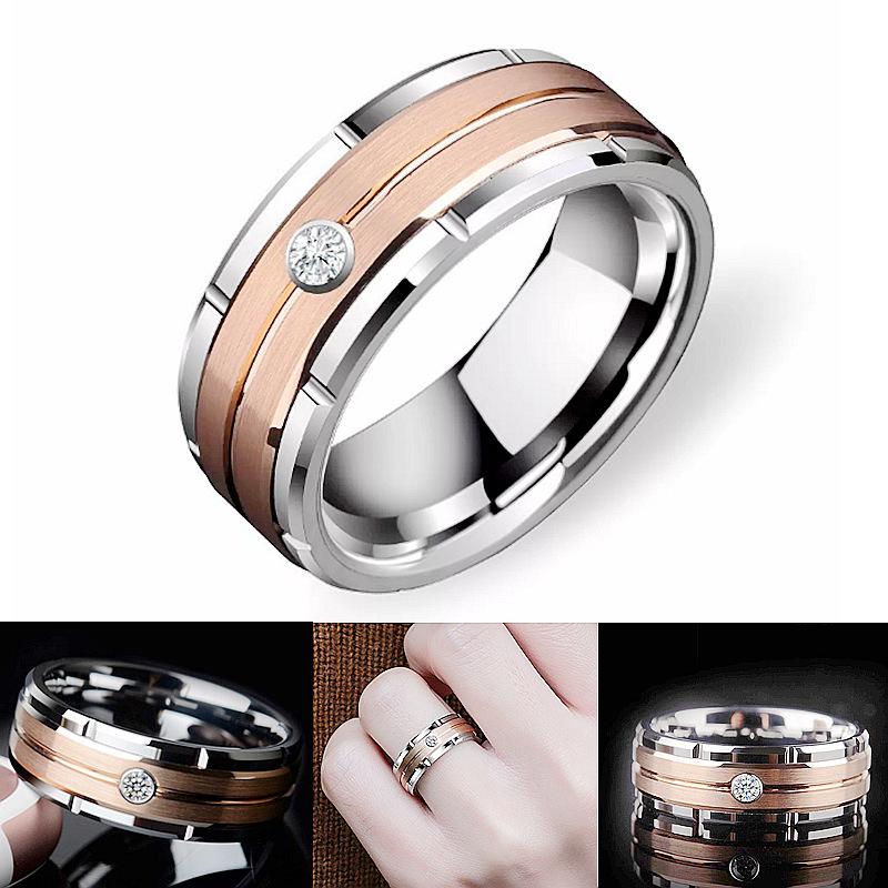 Trendy European & American Titanium Steel Ring with Micro-Inlaid Zircon for Couples