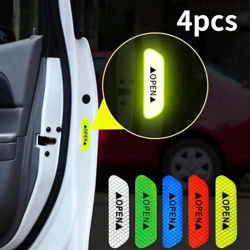4PCS/Set Universal Safety Warning Signs OPEN High Reflective Tape Autonomous Driving Safety Reflective Strip Door Sticker
