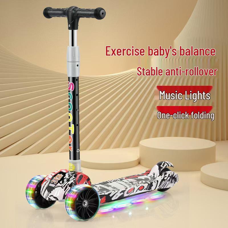 Foldable Children's Scooter with Music & Lights for Ages 3-12
