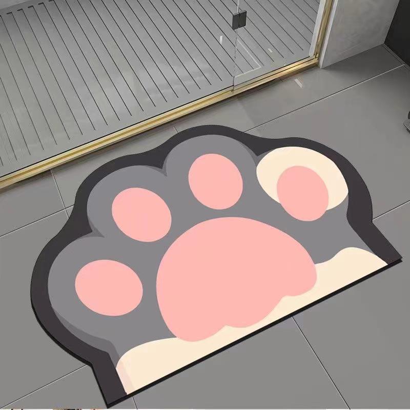 Cartoon Cat Paw Diatomaceous Earth Bathroom Floor Mat - Absorbent Foot Pad for Home and Toilet Entrance.