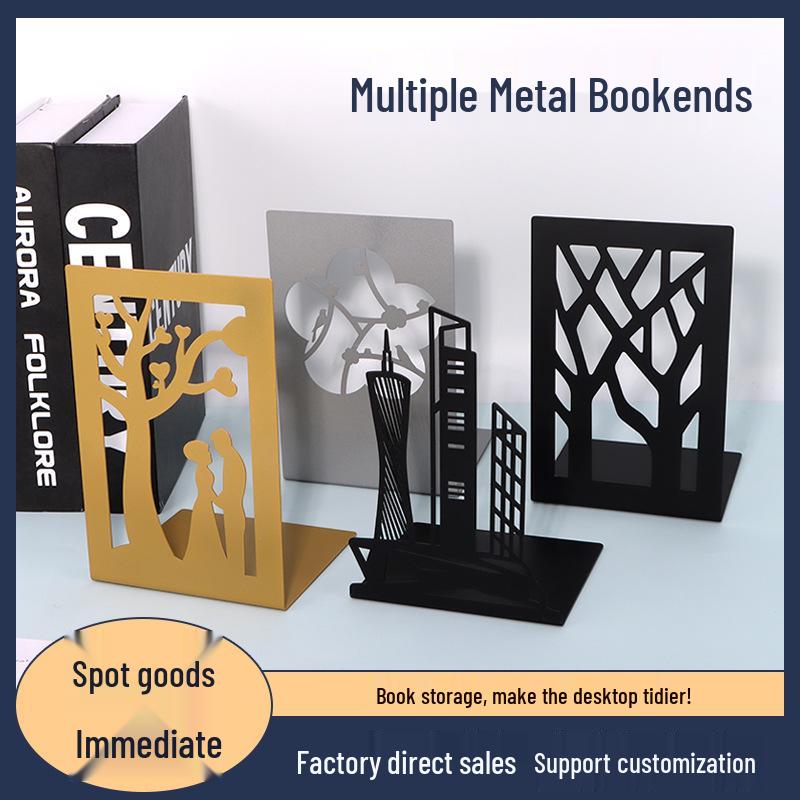 Creative Wrought Iron Metal Book Storage Rack and Personalized Hollowed-Out Bookends