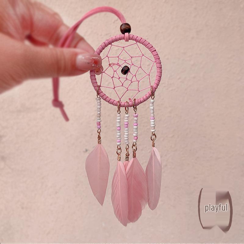 Bohemian Dream Catcher Wind Chime Pendant with Rice Beads - 5cm Wide, Southeast Asian Ethnic Style for Car Decoration.