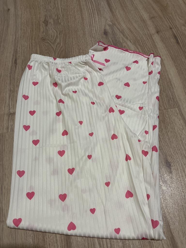 European and American Heart Print V-Neck Long Sleeve Pajama Set for Women - Two-Piece with Long Pants