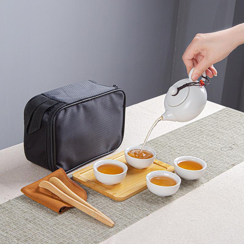 Travel Tea Set, Ding Kiln Kung Fu Ceramic Matte Glaze, One Pot and Two Cups of Gifts