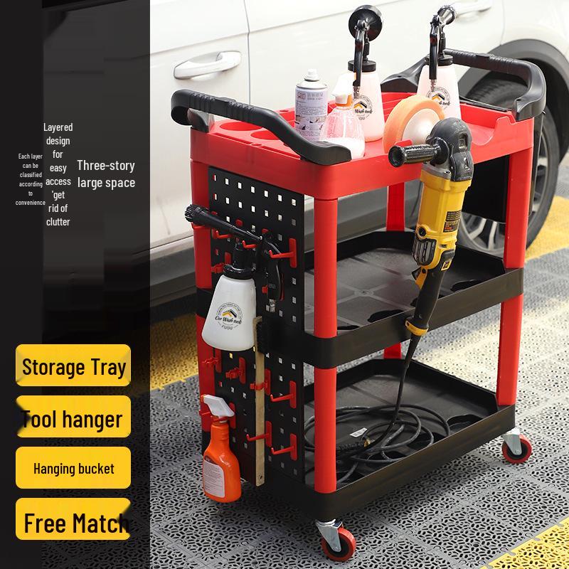 Portable Three-Layer Car Wash Tool Storage Trolley