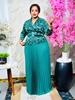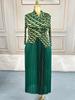 Plus Size Women's High-End Gold Foil Print Pleated Dress with Faux Two-Piece Long Skirt - Casual Style