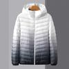 Light Down Jacket Men's Short Autumn and Winter Green Gradual Change Hooded Thin Light Cold Warm White Duck Down Jacket