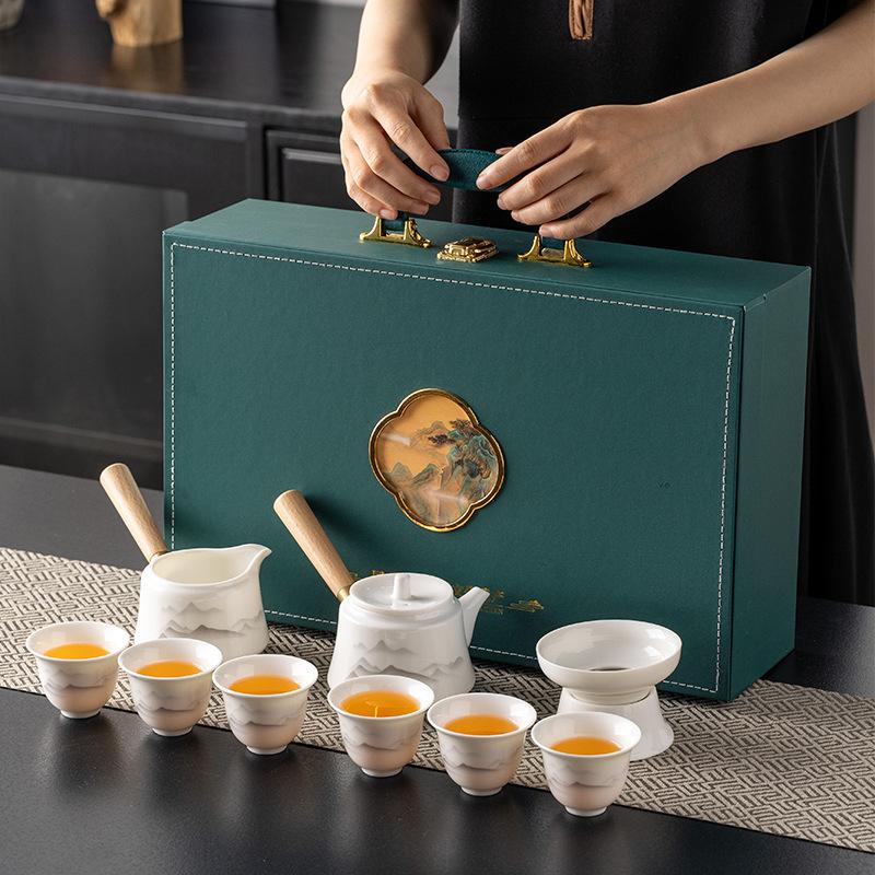 The Whole Set of Suet Jade White Porcelain Side Pot Set, a Full Set of Kung Fu Tea Set, Home Office Business Tea Set Gifts