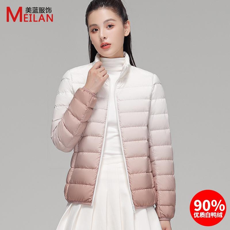 Pinghu Down Jacket Women's Light Down Jacket Short Stand-up Collar White Duck Down Winter Coat Gradual Change Color Liner