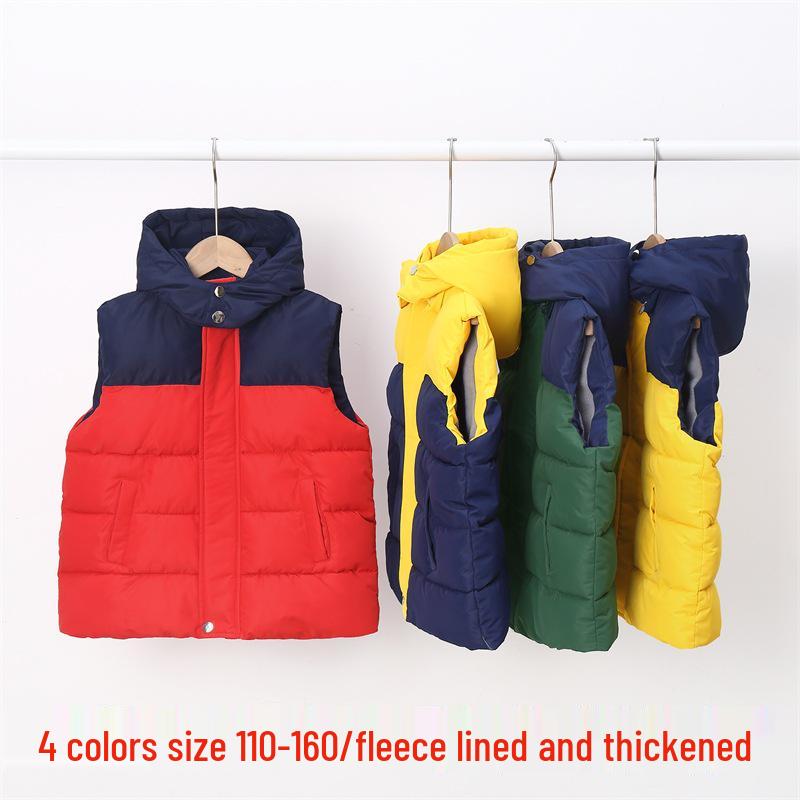 This children's fleece-lined down vest is designed to keep boys and girls warm and comfortable during the autumn and winter seasons. Crafted from high-quality polyester, it offers excellent durability and insulation. The vest features a college-inspired style with a sleek and modern look, making it a versatile addition to any wardrobe. Its thick, cozy lining ensures maximum warmth, perfect for outdoor adventures or chilly days.