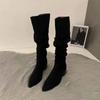 Retro Pleated Suede Long Boots for Women Winter Fashion Chunky Stiletto Sexy Boots. Large Size Versatile Women's Boots