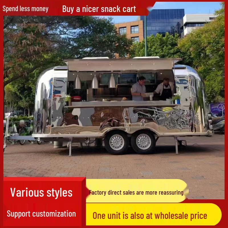 Stainless Steel Mobile Snack Cart: Fast Food, Skewers, BBQ, Cold Drinks - Multifunctional Dining Car for Scenic Areas.