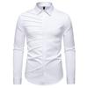 Autumn Men'S Solid Color Pleated Design Long-Sleeved Shirt European Size Men'S Loose Shirt
