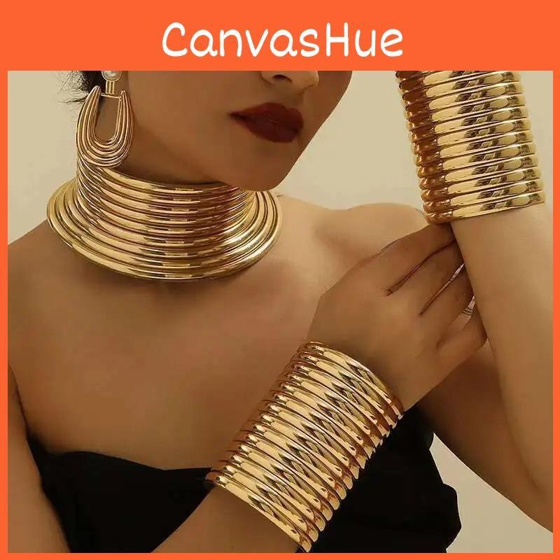This jewelry set features an African-inspired design with bold, geometric shapes, including star, moon, cloud, and galaxy motifs. Crafted from alloy with an electroplating finish, it includes a necklace, two bracelets, and a pair of earrings, measuring approximately 2mm thick and 20 inches long for the chain. Suitable for fashion-forward occasions and casual wear, it adds a striking touch to daily outfits. Easy to maintain with simple wiping using a damp cloth.
