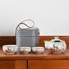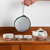 Ru Kiln Twisted Branch Lotus, a Pot of Three Cups of Travel Tea Set, a Complete Set of Express Cup Outdoor Portable Bag, Brewing Teapot
