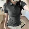 Women's Summer Slim Fit Polo Shirt - Short Sleeve, Button Collar, Straight Shoulder Design