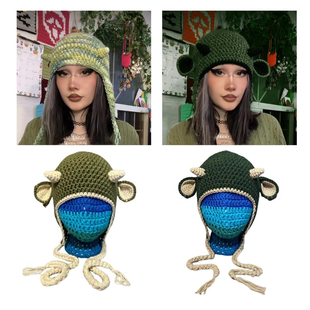 Cartoon Crochet Hat Winter Beanie Cap Long Rabbit Ear Skull Cap Cosplay Party Hat for Teens Adult Universal Headdress