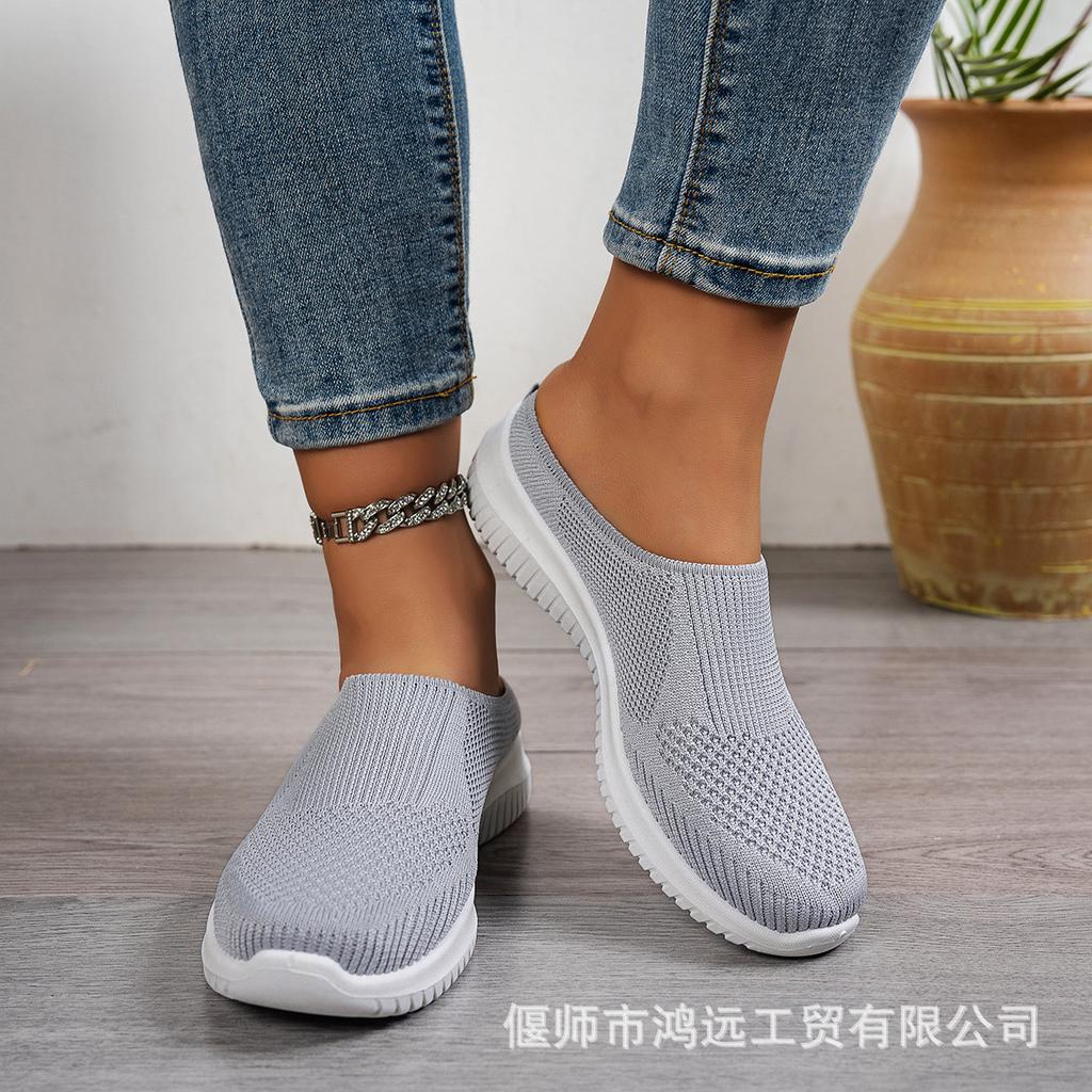 Half-tray Shoes Women's 2025 Autumn New Fly-woven Single Shoes Shallow Mouth Breathable Women's Casual Shoes Large Size Women's Shoes