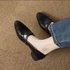 Soft Leather Hollow Sandals Women's 2025 New Summer Thick Heel Low Heel Soft Sole Mother Shoes Breathable Hole Single Shoes