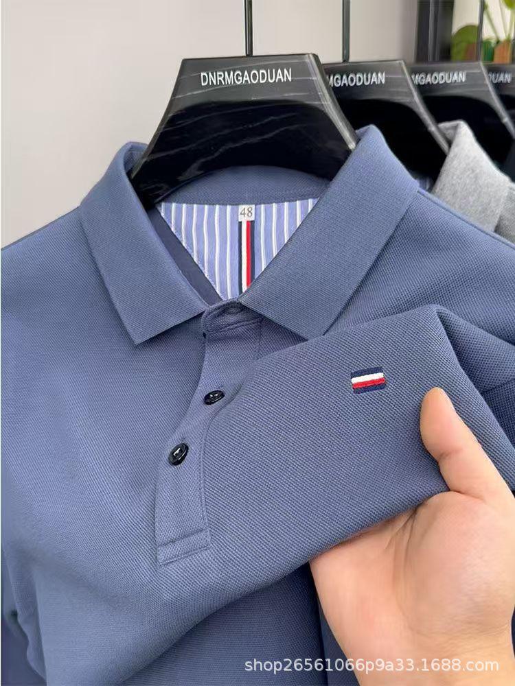 Men's Non-Iron Embroidered Lapel Long Sleeve Polo Shirt - Plus Size, Autumn/Winter Casual Business Style