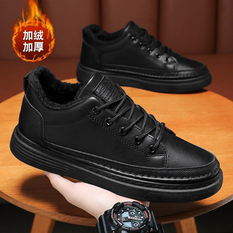 Men's Shoes Winter Velvet Shoes Men's Chef Shoes Trendy Versatile Leather Shoes Casual Thickened Warm Cotton Shoes Work Shoes
