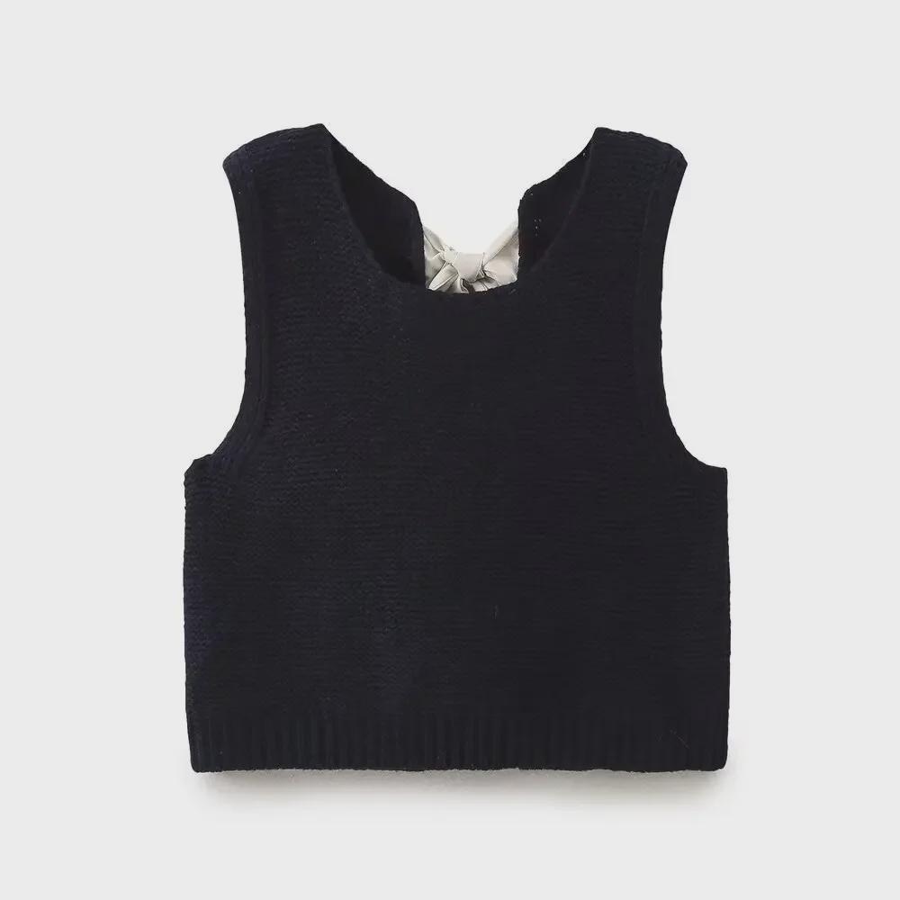 Autumn 2025 Sleeveless Knitted Vest with French-Inspired Bow Detail
