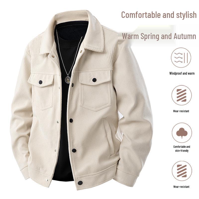 This Men's Trendy Corduroy Turn-Down Collar Jacket is a stylish and versatile outerwear choice for any modern wardrobe. Featuring a tailor neckline and long sleeves, it offers a sleek and polished look for any occasion. Made from medium-thickness polyester material with a solid pattern, this jacket ensures both comfort and durability. The addition of polyester fur lining provides extra warmth, making it suitable for various weather conditions. Perfect for the fashion-forward male, this jacket effortlessly combines style and functionality.