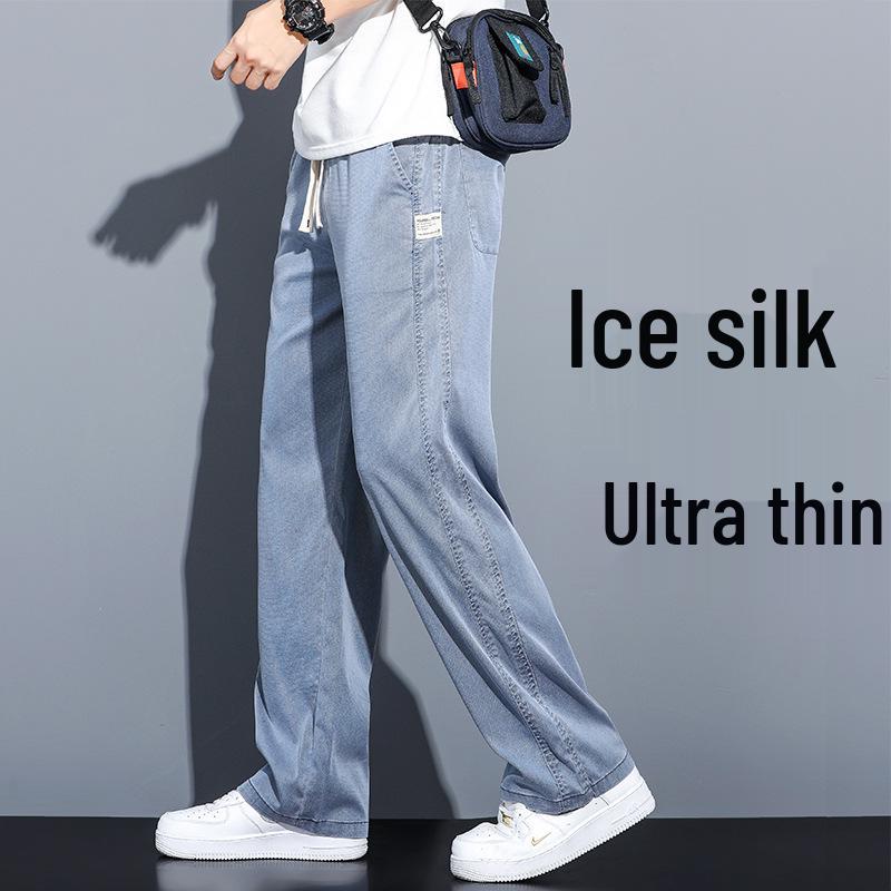 Experience ultimate comfort and style with these men's summer jeans, crafted from a luxurious blend of ice silk Tencel and cotton. Designed for the modern man, these jeans feature a trendy straight leg and a loose, wide-leg fit, providing both breathability and a contemporary look. Ideal for warm weather, they offer a relaxed yet fashionable option for any casual outing.