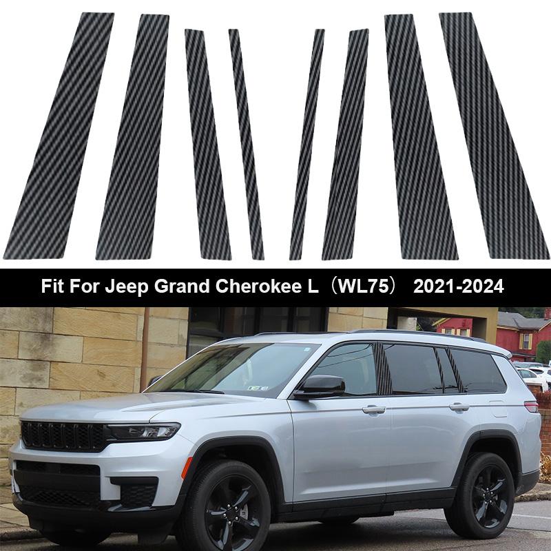 8pcs Door Window Center Middle Column BC Pillar Post Cover Mirror Effect Trim for Jeep Grand Cherokee L WL75 WL74