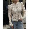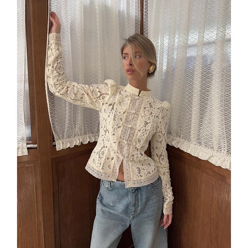 New Lace Hook Flower Women's Shirt Fashion Commuting Long Sleeve Cardigan Top Retro Slim Stand Collar Lady Blouses