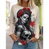 Sugar Skull Pattern Womens Long Sleeve Shirt Day of the Dead Shirts Summer 3D Printed Tops Y2k Gothic Style Women's Clothing